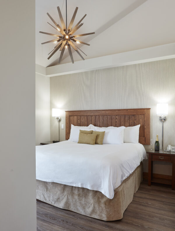 The Inn at Huff Estates is a refined country retreat, featuring 21 Deluxe and Premiere Suites. Nestled beside the renowned Huff Estates Winery, Oeno Gallery, and an enchanting 5 acre sculpture garden, the Inn offers views of rolling vines, offering a tranquil and picturesque escape. For those wishing to host a corporate retreat in Prince Edward County or private events, the Inn also offers an elegant boardroom filled with natural light and an elevated view of the vineyard.