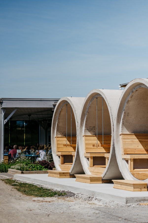 A private vineyard pod for your party (up to eight). Designed from repurposed concrete, styled for unforgettable moments.